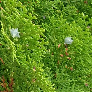 9月下旬に軽井沢のホテルを歩いていたら、あれ??なんか白いのがぽつぽつ見える・・👀なんだろ?? コニファー?の花?実? 他のGSさんのpicで、実とありました😍(間違っていたら、教えてください〜🙇♀️) (コノデガシワと教えて頂きました😊✨) 面白い〜❣️ 初めて見ました♪ 白い金平糖✨みたいで、キレイです😊✨👍