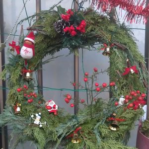 先週作ったリース。 葉っぱの勢いがなくなりそうだから、投稿しますね。 庭の片付けで見たら、南天が初めて実ってました。 今年は喪中だから、飾れないので、今カットして付けました。 皆様、良いクリスマスとお正月をお迎え下さいね。 家は平々凡々の年末になりそうです😅 🏷️クリスマス月間