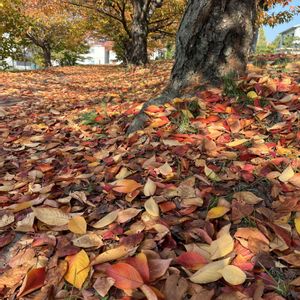 2025.11.18 晴れ⛅ 今日は、風が冷たい。八尾木公園の紅葉がキレイ。 松ぼっくりとオシロイバナ(白)の種をもらって来ました。