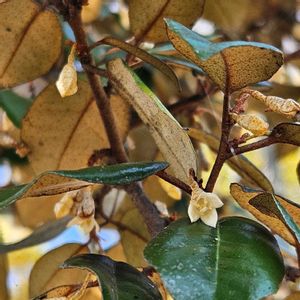 💚🤍ナワシログミ🤍💚 (グミ科 グミ属) ナワシログミは GS 始めてから皆さんに良く見せて貰ってて 実が熟したら…と思っているとバッサリ切られたり 公園を広くして抜かれてしまったり😭 やっと1本見つけて喜んでたけれど…花は咲いても実がならない😆 ビックリグミと同じで もう1本いるのかな。 ヤマコウバシの隣に並んでます🌳🌳😁 下から見上げると…全く色が違って紅葉してるかのよう…銀白色だそうです😊 上から写すと📱綺麗な緑色の葉っぱに大変身🎶😄 数年前にワーイ‼️ナワシログミだぁ~と近寄って触ったらチクリとトゲにやられ💦あんな頃 ツルグミだと思って喜んでたけど…ナワシログミだと伐採されてから気が付く🤣 こちらは 小さいトゲがあるものの ぶら下がった先に鋭いトゲはまだ見当たらないです😁 触る時は気を付けてるのもあるけど…少しは学習した🤭 花の甘い香り いつも気が付かないなぁ😅 食べたら渋いそうだけど…1度頂いてみたいものだ😋 下向きの可愛いお花をびっしり付けてるのになぁ〰🤭