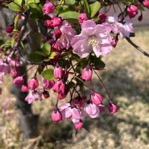 昨日は暖かくなってウキウキ💓💓孫っちと近くの公園へ散歩に カイドウのかわいいピンク🩷の花 桜🌸も今が最高😃