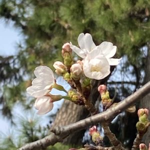 温かい春の日🌸 早咲きの桜が咲き始めました☺️ 先週まで、ダウン着てたのにね😆 冬から春へ一気に⏩️