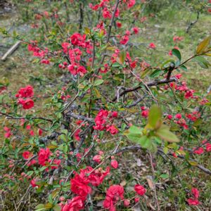 赤いボケ ピンクのボケ どちらもきれいに咲いてます