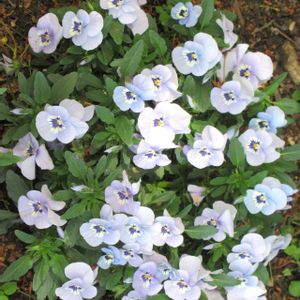 1) パンジー;白 2) 々 ;青 3) 々 ;紫 4) 々 ;青+白 5) 々 ;白+紫