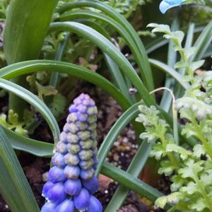 ムスカリの花が咲き始めました〰️💖ネモフィラとチューリップとの寄せ植えで、密になりすぎました💦