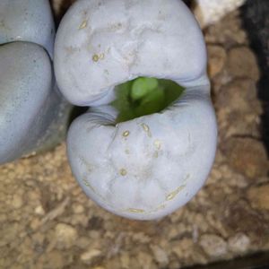 白い石の様なリトープス♡ちゃん〰️💖中から、新芽が出てきました~😊いつも溶けちゃって、消えて行く中我が家では貴重な子ですよ😅