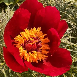 💠 今日のお花・シャクヤク 💠 今年のお花は、 もう散ってしまいましたが、 『 イトバシャクヤク(糸葉芍薬)』 『 ホソバシャクヤク(細葉芍薬)』 と呼ばれているシャクヤク❤️ 十数年前にHCで、購入… 顔見知りの店員さんに 『めったに入らない芍薬なので、買っておいたら良いですよ〜』と声を掛けられ お迎えしたシャクヤクです。 細い葉が、特徴的 ❤️ *連投お許しくださいませ🙏 (2025.5/17 撮影)