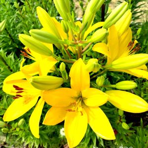 おはようございます🌤 今日のお花 ユリ ①②明るい黄色のユリの花が 華やかに咲いていました🟡 ③オレンジ色のオニユリが咲いていました。 どちらも 過去picです😊