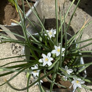 玉すだれ🤗 球根で多年草なので毎年沢山咲いてくれます♪ でも調べてたら毒性がある事を知り、ミントを横に植えて有るけど、変更しなきゃ😂 知らないって怖いわ〜ミントお茶にして飲んでしまってた😱