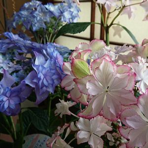 おはよう〜 ございます☁ アジサイ <カサノバ> 4/2にお迎えして 1ヶ月半 2回程picしています あの魅力的な濃いブルーの色から 淡いグリーンの色に 変化💚🤍 ここまで変化する なんて…🙄💦 これはこれでとっても涼しげで 素敵です🌿 真花は可愛いピンクになりました💗 色の変化面白いですね まだ暫くは 楽しめそうです🥰 今日も 気持ちは明るく Happyな 日曜日を〜☺️❣️