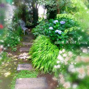 山あじさいが咲くのをとっても楽しみにしていました~ ♡(ღ˘⌣˘ღ) ちっちゃ〜くて 可愛い、可愛い、可愛い・・ 緑帯びたお色から段々白くなっていきます。 アソコにはお日様当たってます〜🌞