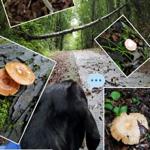 私の孫(🐶💞)はこの夏、夜に鳴り響く連日の⚡雷、打ち上げ花火🎆にすっかり怯えてしまい、お散歩が大嫌いになってしまいました😢 今日は☔雨が降っていましたが、日中に少しでも楽しくお散歩させてあげたい💞とリードを引き、枝道に入ったら倒木😵⤵ 🐶も思わず立ち止まりました😅 気を取り直して別の道へ🚶 道端には可愛い🍄キノコがイッパイ🍄 那須高原は既に秋になっています🍂