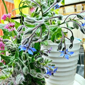 《ポリジ〜青花が美しいハーブ》 エディブルフラワーとして砂糖漬けやケーキの飾り、ワインの香りづけなどに使われます🤭 見て美しい、食べても美味しい花なんて珍しいよね🌸🌼