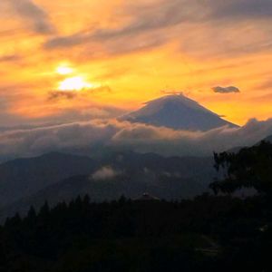 夕陽と富士山 (2023.6.17 18:30 小山町足柄峠中腹大曲より)
