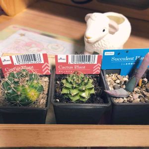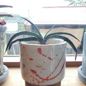 先週、ダイソーでアロエ スプラフォリアータらしきものを狩ってきましたが、3つあるうちの1つだけ連れてきました。 今週再訪したところ、残り2つがまだ残っていたので買い占めて…いや、救出してきました😊 葉先が枯れてきてますが生長点は元気のようなので頑張って大きくなってもらいたいものです。