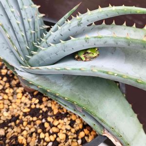 アロエ スプラフォリアータ 4月に親の株元に種をまいた🌱チビたちにも 少しだけトゲが出てきて成長を感じる😊 適当にまいた割にはそこそこ生き残っているようだ