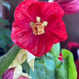 アブチロン 姫リンゴ ローズレッド つる性のアブチロン姫リンゴ🍎 真赤な色鮮やかな花をたくさん 途切れなく咲いてくれています💗