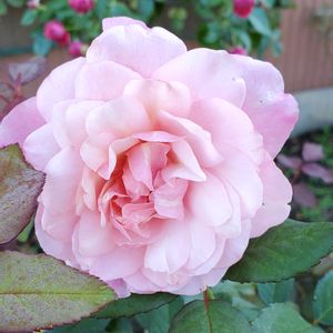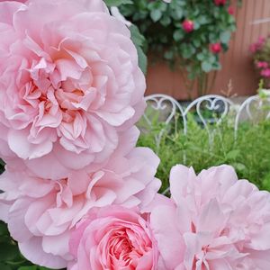 他のバラの影になって元気がなくなってしまったピンクグルスアンアーヘンさんを鉢に植え直しました。するとどうでしょう、あなただれ?って言うほど大きくてお顔が違うお花がいっぱい咲きました。きっと、これが本来のお顔なんですね。