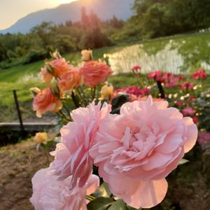 後ろから朝日を浴びるピンクグルスアンアーヘン💓 透けた感じがまた一段と可愛いです🥰 近くによると、香水のいい香り💓