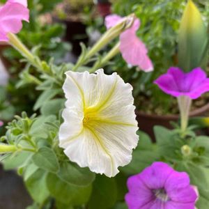 ✿.* こぼれ種のペチュニア鉢です 上手いこと奇跡… 三種類のお花が咲きました🙌 何本か間引きしちゃった! 残して置けばよかったかな😅 水曜日☽︎︎.*·̩͙おやっとさあ✩.*˚