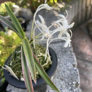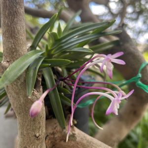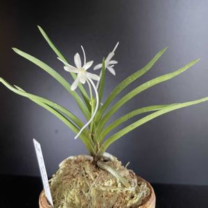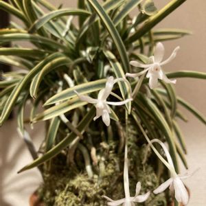 今年の2月に購入した風蘭。 楽しみにしていた蕾が開きました。 花も葉も根も素敵! 幽玄という言葉が似合います。 生産者様ありがとうございました。