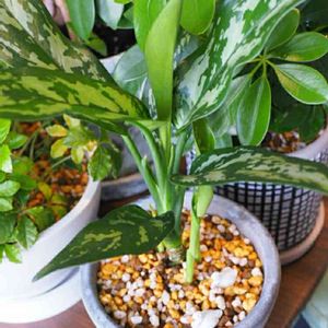 相方んちから勝手に切り取ってきたアグラオネマ マリアさん 元気ですわ〜🤗 ちなみに、相方んちに残してきた株元は枯れちゃいました…… オマエが枯らした!って言われてます😓