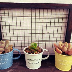 セリアで可愛いブリキ缶があったから買ってしまったー❣️家で育った多肉達を乗せて飾りました😉