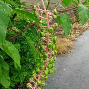道端の電柱の横から咲いている ヨウシュヤマゴボウです。