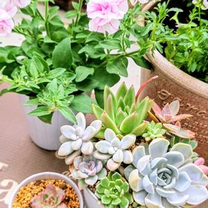 🌸かすみ草🩷🤍 一重咲き・八重咲き 咲き終わってバッサリ✂して~ また咲いてくれたけど、凄くコンパクト😆 ☘️ペンデンス 去年バラバラ✩に💦また、4月にお迎えして初picかな 1苗を分けてのコ、徒長してますね😂 ☘️ピンクザラゴーサ 小さくなったけど、その後の成長も💦 🌸のピンクと名前の☘️ピンクで、オマケでパシャ😚