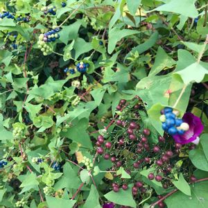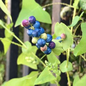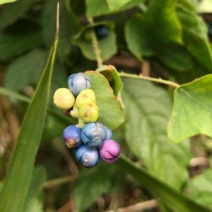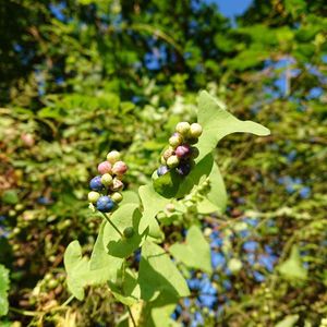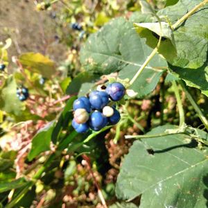 「イシミカワ(石見川、板帰)」 果実は淡緑色、紅紫色、青藍色へと変化する。 小さな鋭い棘があって痛そう。 2020.10.19撮影