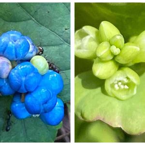 イシミカワの実が 美しく色づいていました🥰 右は、1ヶ月前くらいに会った お花です。超地味子ちゃん🤣 去年、実を初めてみましたが、 お花に気付かなかった理由が わかりました😅