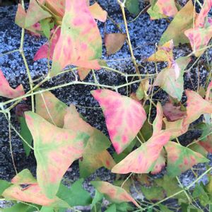 川岸の散歩道で見つけました。三角の葉っぱが可愛い。