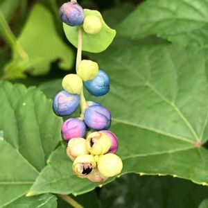 イシミカワ 🌸 (実りの秋 vol.3) 青や紫の光沢のある果実が付きます😊 でも茎などにトゲがあるので要注意😓