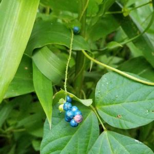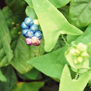 葉っぱの付け根の、青い丸い実(5mm)が可愛い💙💜 ムラサキシキブやコムラサキのよう・・・ でも色も違うし、葉が違うの。 ~イシミカワ~ タデ科イヌタデ属のつる性の一年草。 2018.10.6 都立水元公園内 野草園にて📷