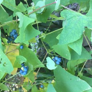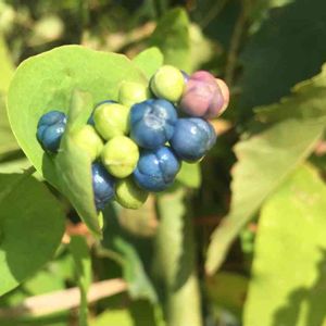 畑道の端っこに青い実を見つけました! 5㎜ほどの小さい実 調べたら、イシミカワ(石見川・石実皮) 語源はわからないらしい 緑色から青く、もっと濃い色になるみたい…