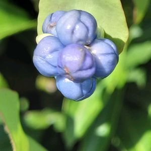 Love♡らぶ♡タデ科より… 待ってたよ~📣😍 今年も素敵な色になりました、 イシミカワの実🔵🟣🟢 ふる里の散歩道より。 イシミカワ(石見川、石実皮、石膠) 薬用植物 別名・サデクサ、アシカキ コンペイトウ 《スライドpic》 ①☝️番のブルー🔵✨ ②⬆️9/14、まだ🟢1色でした ⬇️10/12、色づきイロイロ… ③、④ 撮影した実、残らず… ⑤ヤブマメ💜とコラボ~