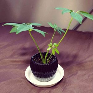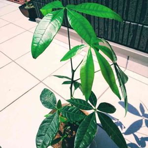 約3週間前に窮屈だった鉢から大きめの鉢に植え替えをして伸び伸び育ってるパキラ✨ 根元には沢山 小さいのがピョコピョコ出て来てる‼️ 可愛い(*≧з≦)