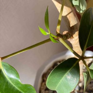 フィカス・ティネケ 新しい葉が、あまりにもピカピカなので 思わず…🌟 ひとりでニヤけています🌱