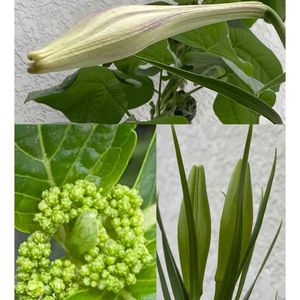 おはようございます♡ 🏷金曜日の蕾たち❣️ 2mを越す背高ノッポのタカサゴユリ🤍⁉️ 鳥の顔みたい😄 すらりとしたササユリ🤍 花が終わった挿し木の紫陽花、鉢替えも終わった所で、また花芽❣️ みんな元気に咲いてね💕🎶🤗
