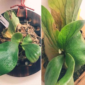 今日のビカクシダ 動いてきたけど貯水葉があんまり良くないエレファントティス 小さく不定芽が枯れ貯水葉から2つ出てきた… 間に合うか?かぶさって★になるか?さてどっち(?_?)