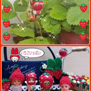 おはようございます🙆 今日は🍓の日に参加させていただきます( *´艸`) ワイルドストロベリ-🍓が、また育ってきて今年はいくつか実になり始めてます☝️ ただ、この長雨☔で、せっかく出来た実が、☆になってしまったりしてるけど、去年よりも花がいくつか咲いたりしてて成長を感じます🍓 ⬇いちごさんのコルクベリ-チャンに🍓ピック それから…キュピチャン達、 syamunekoサンから頂いた🍓おぼうぼを、被っての参加🙌❤ 今日はたくさんの🍓picを見れますね( *´艸`)
