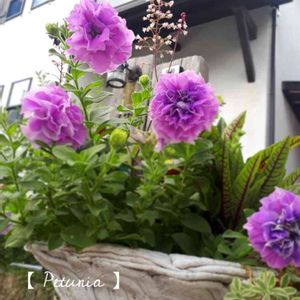 【八重ペチュニア】 コサージュのように華やかなペチュニア。 雨上がりの青空に気持ち良さそう!