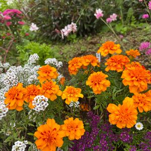 マリーゴールドが良い仕事をしている。ナメクジに食われてもう終わったと思ったのに薬まいてから大復活! アリッサムは去年の秋の寄せ植えの生き残りを植えたらこれも復活 夏は全然手入れしてなかったのに賑やかになって嬉しい