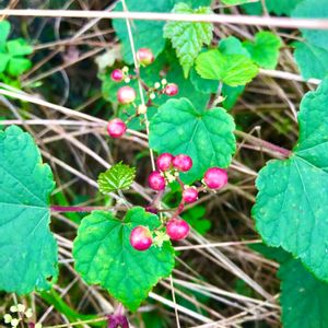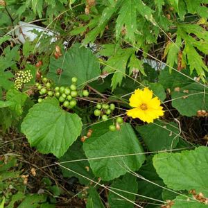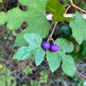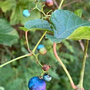 今年、庭に現れた植物。 『野葡萄』で、あっているでしょうか?🤔 だとしたら、最近滅多に見なくなったので、嬉しいのですが😃