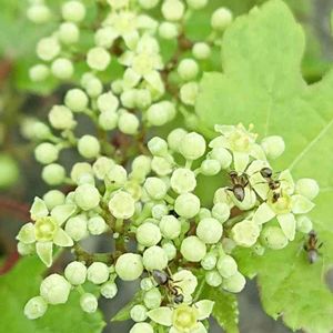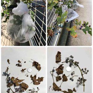 野葡萄の実は寄生される事で実が色づく説があるので、もしかして成虫を捕獲できるかも・・・ 11月16日 すでに実ができ 色づいてますが、 ・不織布で小枝ごと包んでゴムで閉じたも の ・不織布をボンドで接着し袋を作り小枝を 閉じたもの 12月27日 不織布の中を確かめました。 成虫はみあたらない。 全ての実をつぶしてみましたが、虫は発見できませんでした。😓 来春、花が咲き始めたら、同じ実験をしてみたいです。今回は 始める時期が遅かったと思います🙇♀️⤵️ 花を不織布で覆ったら良いかしらね? 虫違いですが、我が家の実は虫こぶになってる実はありませんでした。 現在 葉や小枝がポロポロと落ち 太い枝のみになってきてます。