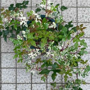 ◎斑入り野葡萄 エレガンス まだ写真やGSなどでしか見たことがない あの宝石のようなカラフルな実を実際に見たくて そんな時先月末にお花屋さんで偶然苗を見つけて 一気にテンション上がりました( 艸`*)ププッ 迷わず連れて帰ってきましたよ❣︎ 写真は小さな蕾とお花です 実がなるのが本当に楽しみです♥️ Ampelopsis glandulosa'Elegans'
