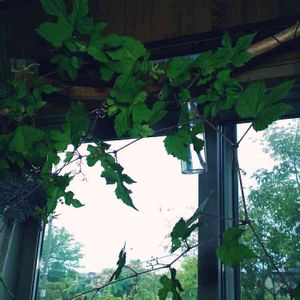 暗い画像ですみませんm(__)m 庭に勝手に生えてきた野葡萄。 葉っぱが健康な野葡萄さんを飾ってみたら 思いのほか窓辺にマッチしました。 私のグリーン好きもついに雑草に及んでしまった。😁
