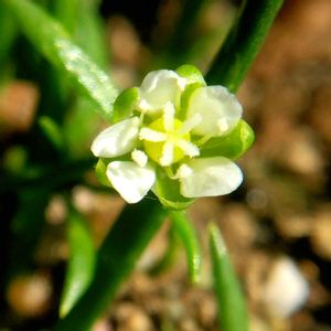 道端の小さな花 道の割れ目から生えて踏みつぶされ地面に張りついているアレ、やっと花が咲いているのを見つけました。なんとなくナデシコ科かなと思ったら、当たりでした。 ツメクサ(ナデシコ科) 爪草です。詰草ではありません。 ①花のアップ ③アレ