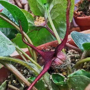 Asarum caudatum Lindl 北アメリカ産 温めてた画像を1つ投稿! (もう1つ最近咲いた超グロい花の画像がありますが温めておきますw) あぁぁ…最高にグロい♥ 表面には大量の毛が生えてるのでアップで見るとグロさが際立って面白いですよ!😀 ここまで萼片が長く咲くとは… もう触手ですねw🤣 こんな植物ですが −1℃は普通に耐えて 良く増えて良く咲いて 栽培も容易です❕👍