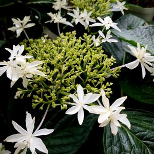 毎日更新紫陽花シリーズ6/16 💠八丈千鳥💠 八丈島で発見された純白の四季咲き紫陽花❣️ 葉が濃い緑で、純白の装飾花を星のように散りばめたお花を咲かせます。 コントラストがとても美しい😍 八丈島のように暖かければいつでも咲くらしいですが、さすがに都内では無理でした。 が‼️去年暖冬だったので、落葉しませんでした😳四季咲きパワーなのか5月くらいからずっと咲いてます😊💠 地植えにすると大きく育ち、大皿のような見事な大輪が咲くようです。写真で見て感動しました✨💠💕 我が家の鉢では小皿サイズです😅 品種改良にもよく使われてるようで、新品種に面影を見たりします☺️ とってもお気に入りの紫陽花です💕💕